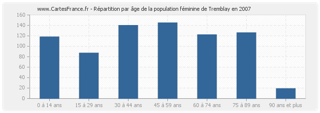 Répartition de la population féminine de Tremblay par âge en 2007 :