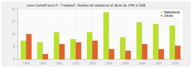 - Tresbœuf en 2008 : 20 naissances et 8 décès