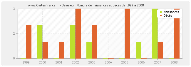 - Beaulieu en 2008 : 0 naissances et 3 décès