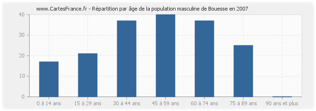 Répartition de la population masculine de Bouesse par âge en 2007 :