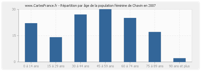 Répartition de la population féminine de Chavin par âge en 2007 :
