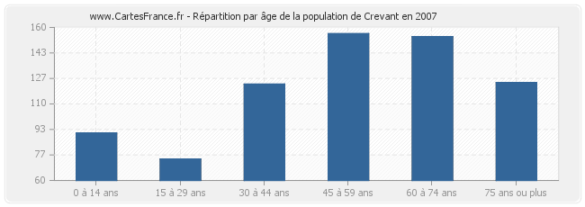 - Population de Crevant de 45 à 59 ans : 156 habitants
