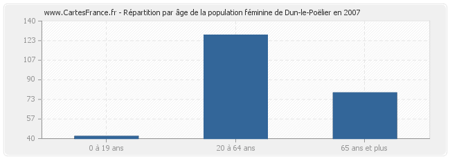 Répartition de la population féminine de Dun-le-Poëlier par âge en 2007 :