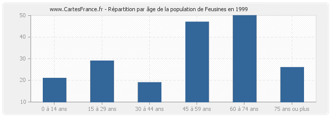 - Population de Feusines de 45 à 59 ans : 47 habitants