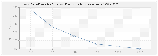 La population de Fontenay était de 80 habitants en 2007, 86 habitants en 1999, 92 habitants en 1990, 111 habitants en 1982, 133 habitants en 1975 et 175 habitants en 1968.