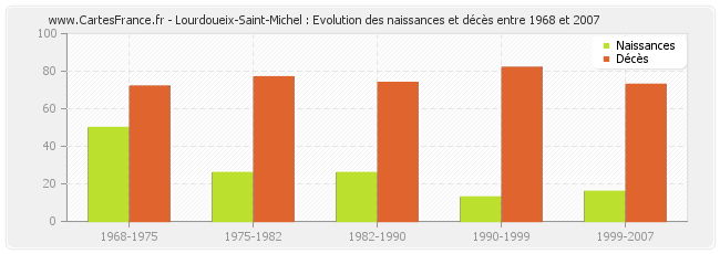 Lourdoueix-Saint-Michel : évolution des naissances et décès de 1968 à 2007