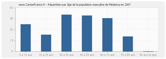 Répartition de la population masculine de Méobecq par âge en 2007 :