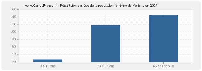 Répartition de la population féminine de Mérigny par âge en 2007 :