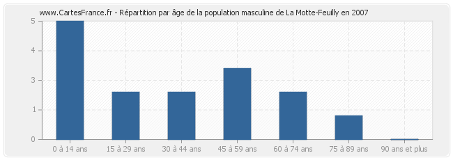 Répartition de la population masculine de La Motte-Feuilly par âge en 2007 :