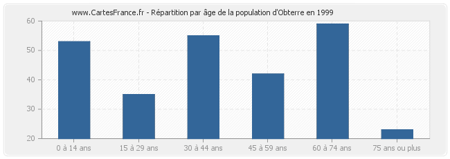 - Population d'Obterre de 60 à 74 ans : 59 habitants