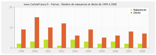 - Parnac en 2008 : 2 naissances et 7 décès