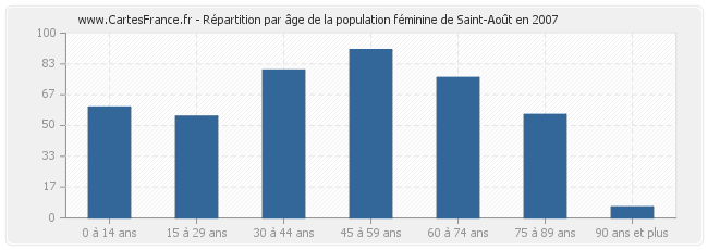 Répartition de la population féminine de Saint-Août par âge en 2007 :
