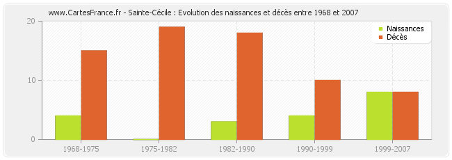 Sainte-Cécile : évolution des naissances et décès de 1968 à 2007