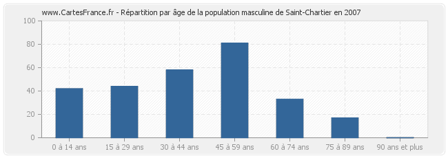 - Hommes de 45 à 59 ans habitant Saint-Chartier : 81