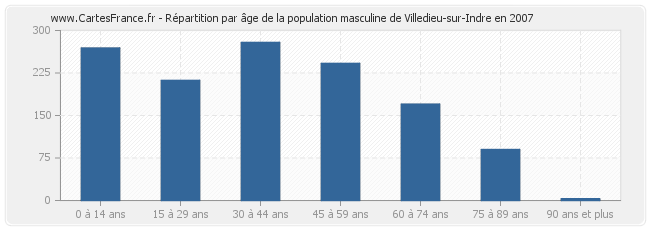 Répartition de la population masculine de Villedieu-sur-Indre par âge en 2007 :