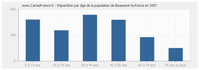 - Population de Beaumont-la-Ronce de 30 à 44 ans : 267 habitants