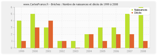 Brèches : naissances et décès de 1999 à 2008