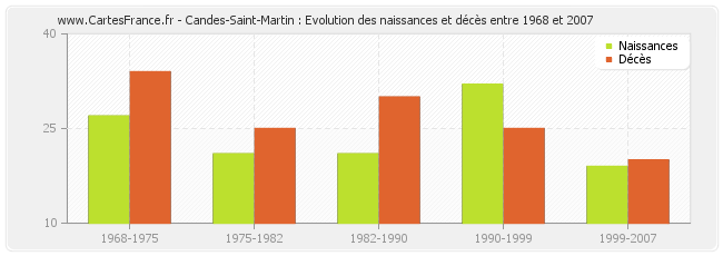 Candes-Saint-Martin : évolution des naissances et décès de 1968 à 2007