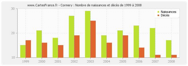 - Cormery en 2008 : 17 naissances et 11 décès