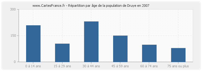 - Population de Druye de 0 à 14 ans : 208 habitants
