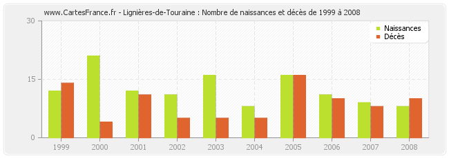 Lignières-de-Touraine : naissances et décès de 1999 à 2008
