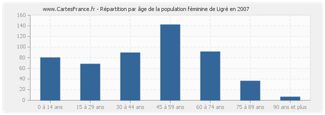 - Femmes de 45 à 59 ans habitant Ligré : 142