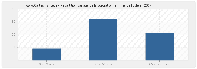 Répartition de la population féminine de Lublé par âge en 2007 :