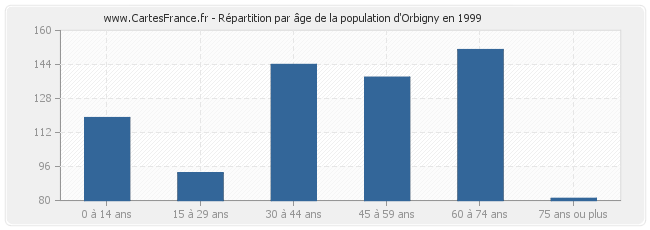 - Population d'Orbigny de 60 à 74 ans : 151 habitants