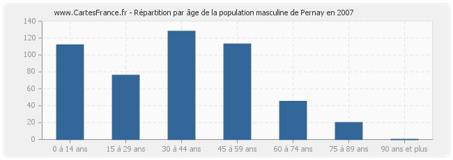 Répartition de la population masculine de Pernay par âge en 2007 :