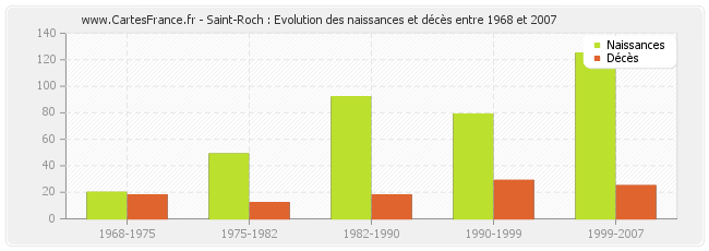 Saint-Roch : évolution des naissances et décès de 1968 à 2007