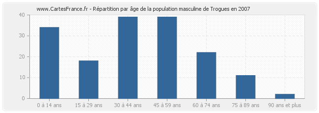 - Hommes de 30 à 44 ans habitant Trogues : 39