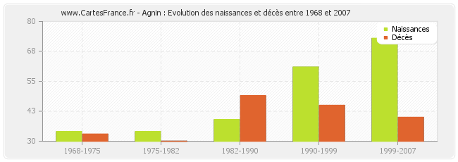 Agnin : évolution des naissances et décès de 1968 à 2007