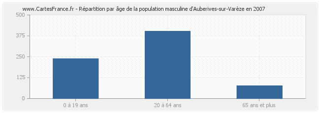 Répartition de la population masculine d'Auberives-sur-Varèze par âge en 2007 :