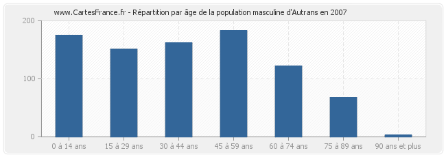 Répartition de la population masculine d'Autrans par âge en 2007 :
