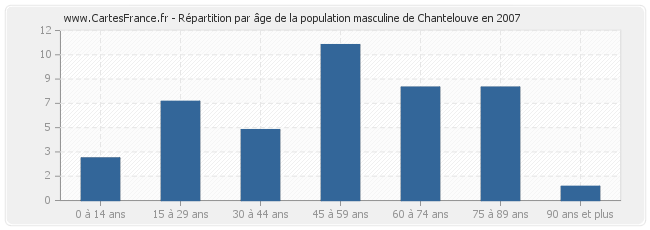 Répartition de la population masculine de Chantelouve par âge en 2007 :