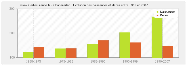 Chapareillan : évolution des naissances et décès de 1968 à 2007