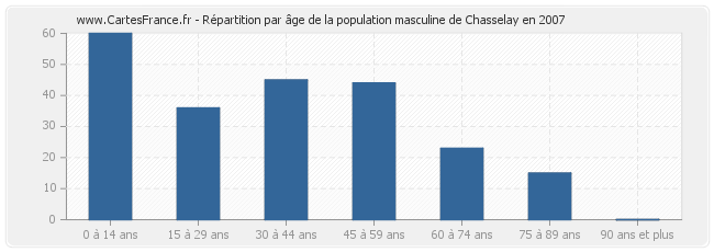 Répartition de la population masculine de Chasselay par âge en 2007 :