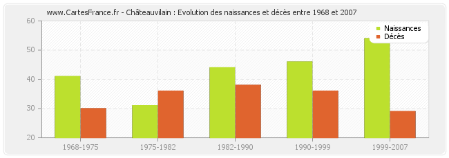 Châteauvilain : évolution des naissances et décès de 1968 à 2007