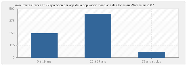 Répartition de la population masculine de Clonas-sur-Varèze par âge en 2007 :
