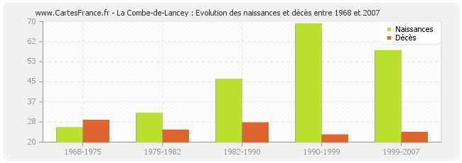 La Combe-de-Lancey : évolution des naissances et décès de 1968 à 2007
