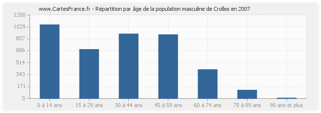 - Hommes de 0 à 14 ans habitant Crolles : 1 059