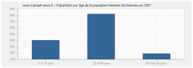 Répartition de la population féminine de Dolomieu par âge en 2007 :