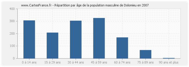 - Hommes de 45 à 59 ans habitant Dolomieu : 325