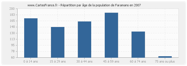 - Population de Faramans de 45 à 59 ans : 188 habitants