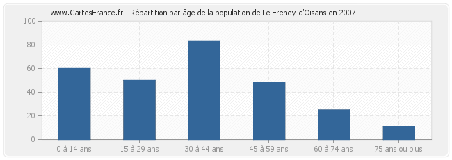 - Population de Le Freney-d'Oisans de 30 à 44 ans : 83 habitants