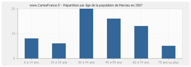 - Population de Marcieu de 30 à 44 ans : 20 habitants
