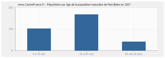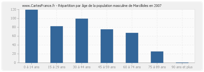 Répartition de la population masculine de Marcilloles par âge en 2007 :
