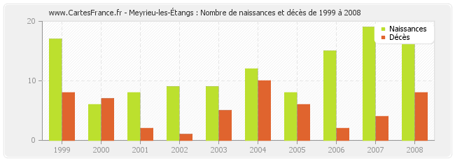 - Meyrieu-les-Étangs en 1999 : 17 naissances et 8 décès
