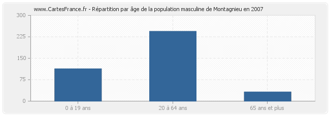 Répartition de la population masculine de Montagnieu par âge en 2007 :