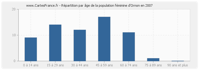 Répartition de la population féminine d'Ornon par âge en 2007 :